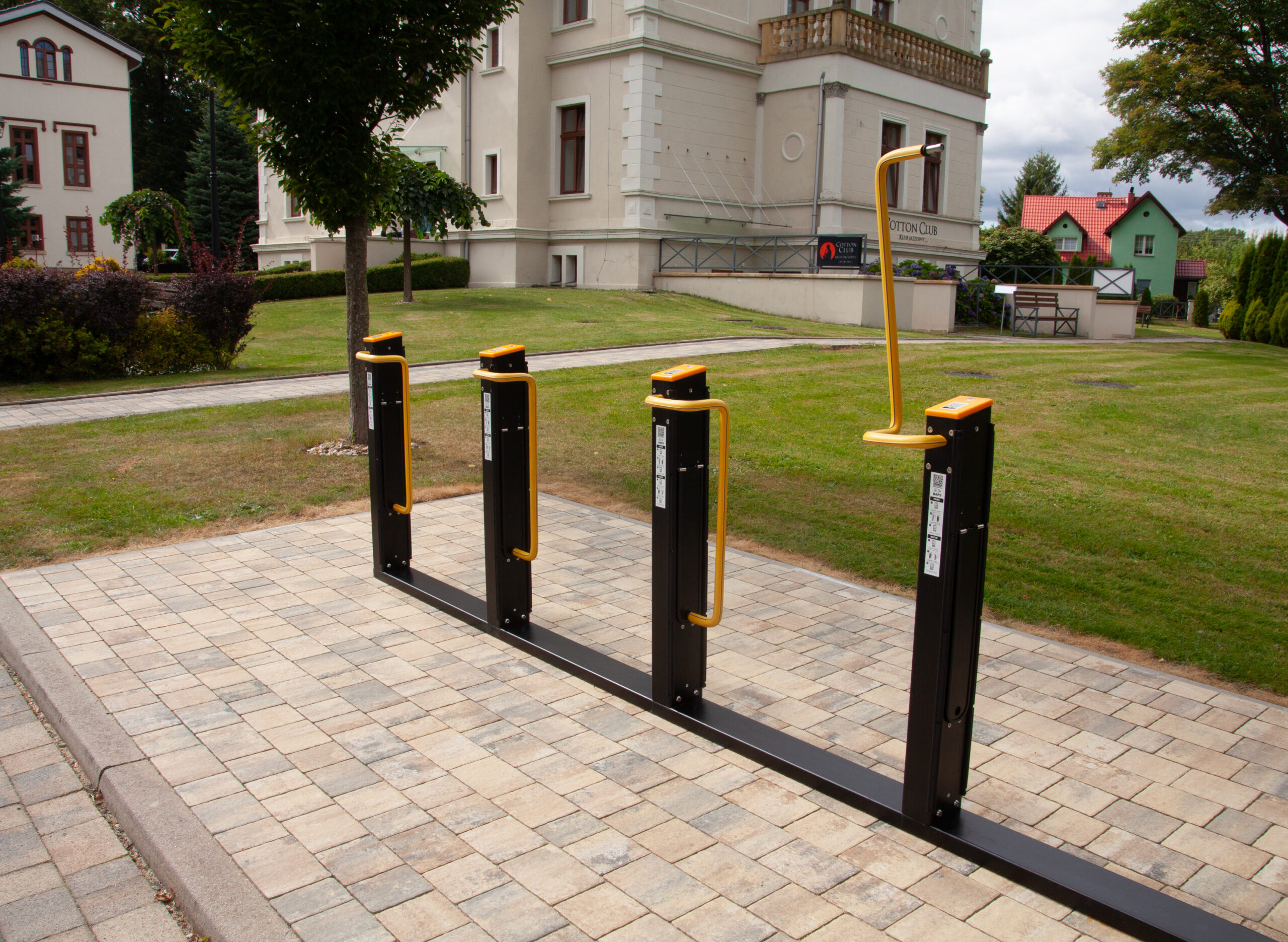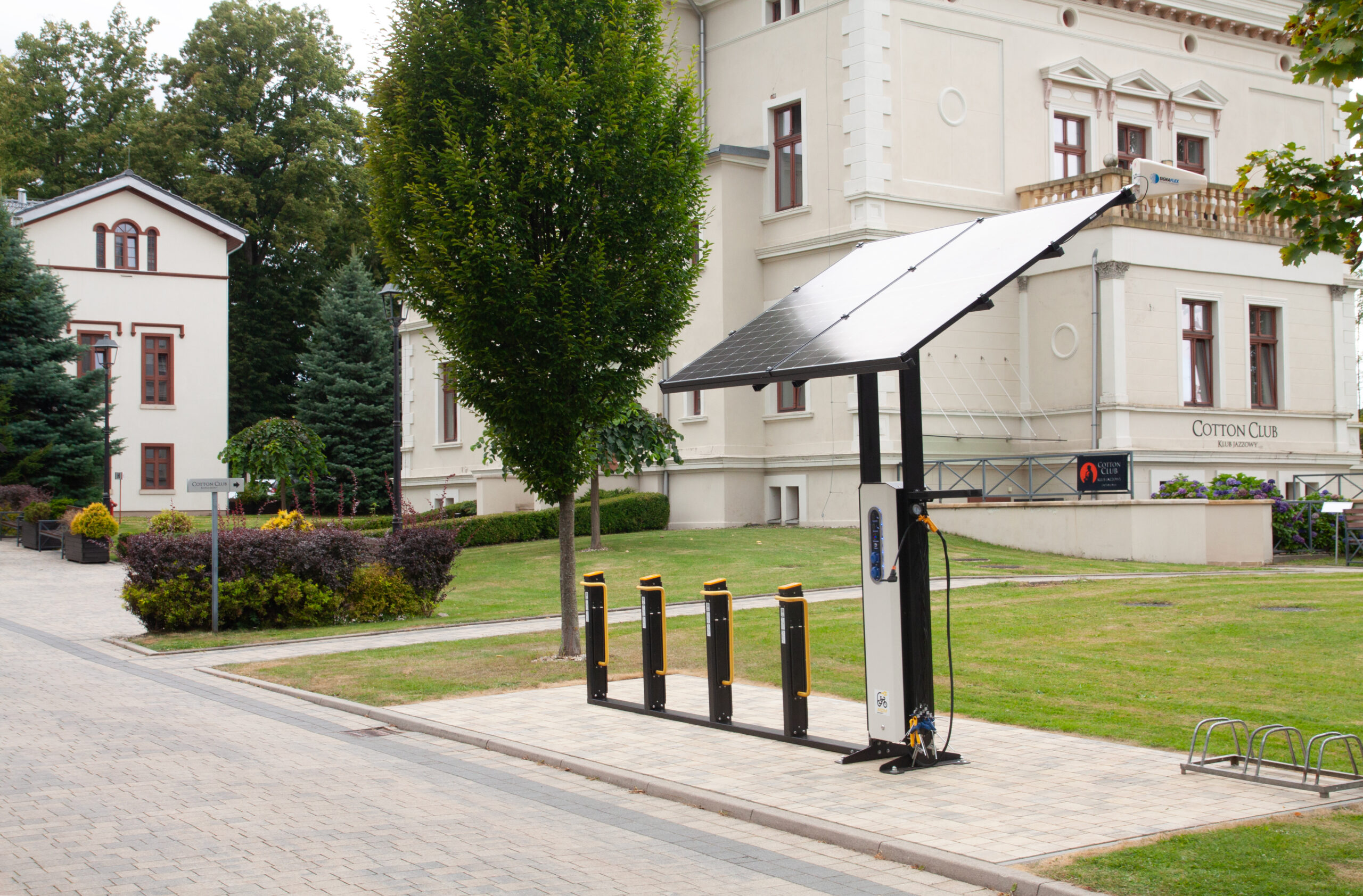 Bezpieczne ładowanie przy wejściu, dłuższy czas wizyty i lepsze doświadczenie klientów dojeżdżających rowerem.