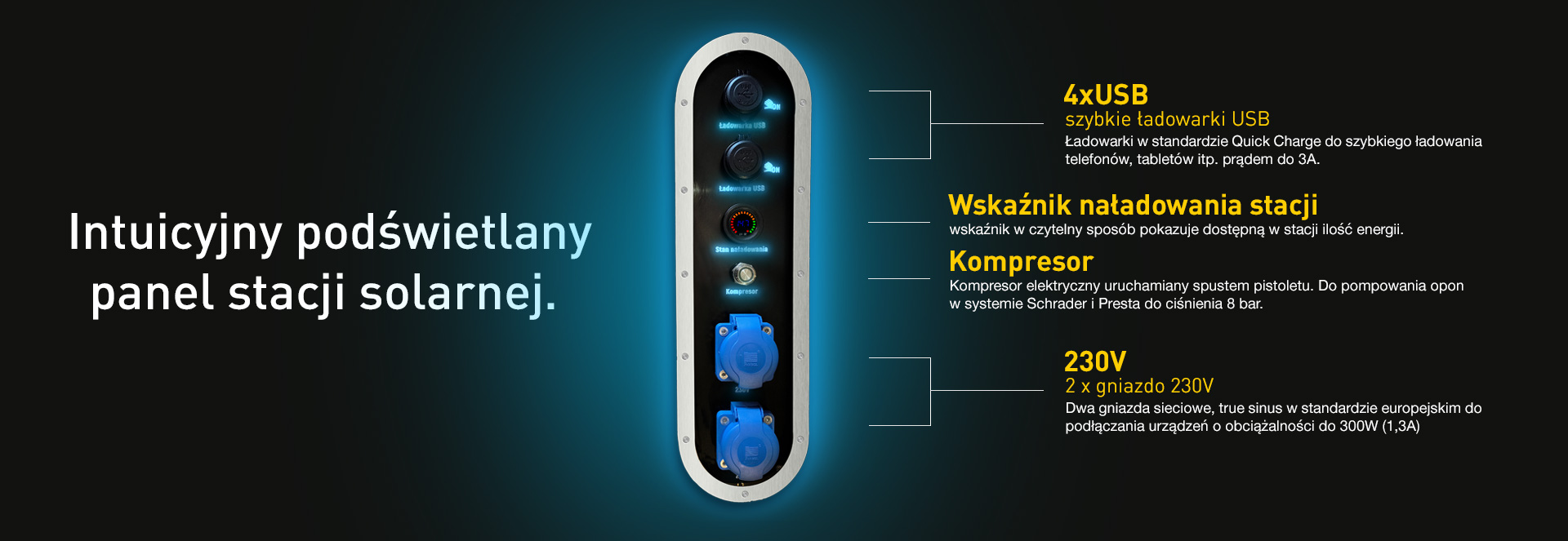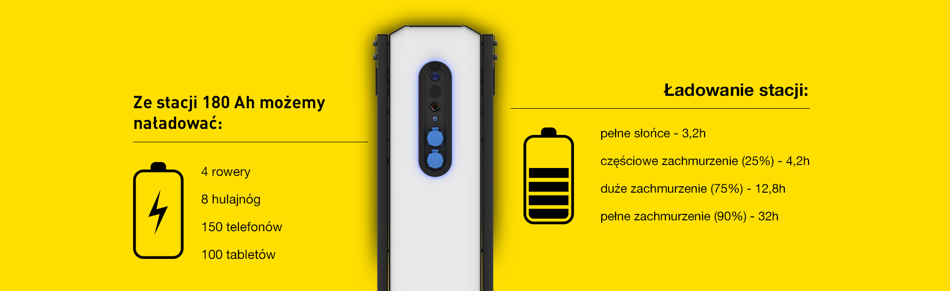 • Przyjazność dla użytkownika: Intuicyjny interfejs oraz łatwo dostępne gniazda ładowania sprawiają, że korzystanie ze stacji jest proste i wygodne.